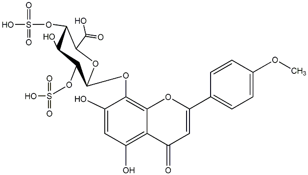InChI=1S/C22H20O18S2/c1-35-9-4-2-8(3-5-9)13-7-11(24)14-10(23)6-12(25)16(17(14)36-13)37-22-19(40-42(32,33)34)15(26)18(39-41(29,30)31)20(38-22)21(27)28/h2-7,15,18-20,22-23,25-26H,1H3,(H,27,28)(H,29,30,31)(H,32,33,34)/t15-,18-,19+,20-,22+/m0/s1 |