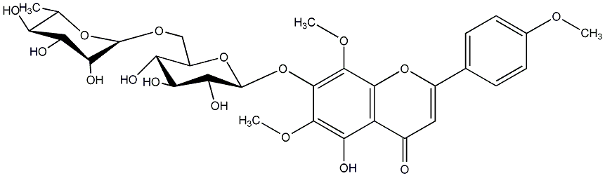 COc1ccc(-c2cc(=O)c3c(O)c(OC)c(O[C@@H]4OC(CO[C@@H]5OC(C)[C@H](O)C(O)[C@@H]5O)[C@@H](O)[C@H](O)C4O)c(OC)c3o2)cc1 |