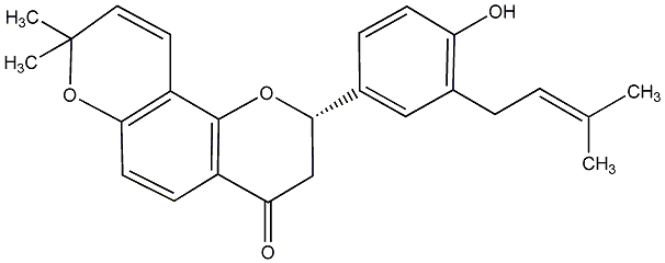 InChI=1S/C25H26O4/c1-15(2)5-6-16-13-17(7-9-20(16)26)23-14-21(27)18-8-10-22-19(24(18)28-23)11-12-25(3,4)29-22/h5,7-13,23,26H,6,14H2,1-4H3/t23-/m0/s1 |