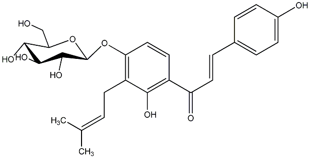 InChI=1S/C26H30O9/c1-14(2)3-9-18-20(34-26-25(33)24(32)23(31)21(13-27)35-26)12-10-17(22(18)30)19(29)11-6-15-4-7-16(28)8-5-15/h3-8,10-12,21,23-28,30-33H,9,13H2,1-2H3/b11-6+/t21-,23+,24-,25+,26+/m0/s1 |