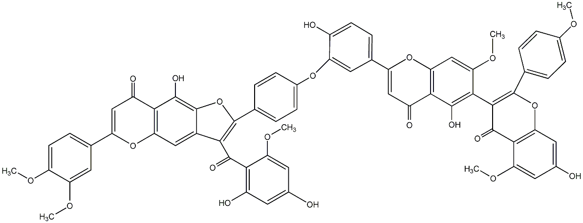 (4''',5'',7-Trihydroxy-4',5,7''-trimethoxy-3,6''-bi-flavone)-3'''-O-4'''-(5,5'',7''-trihydroxy-3',3'',4'-trimethoxy-6-O-beta,7-alpha-flavone-chalcone) |