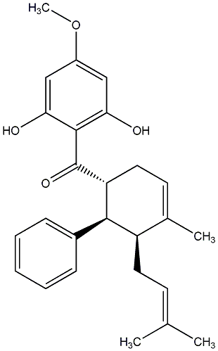 COc1cc(O)c(C(=O)[C@@H]2CC=C(C)[C@@H](CC=C(C)C)[C@H]2c2ccccc2)c(O)c1 |