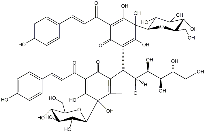 O=C(/C=C/c1ccc(O)cc1)C1=C(O)C(O)([C@@H]2O[C@H](CO)[C@@H](O)C(O)C2O)C(O)=C(C2C3=C(O[C@@H]2[C@@H](O)[C@H](O)[C@H](O)CO)C(O)([C@@H]2OC(CO)[C@@H](O)[C@H](O)C2O)C(O)=C(C(=O)/C=C/c2ccc(O)cc2)C3=O)C1=O |