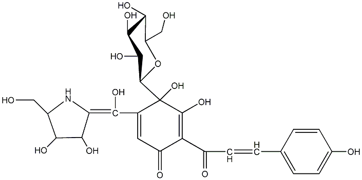 O=C(C=Cc1ccc(O)cc1)C1=C(O)C(O)([C@@H]2OC(CO)[C@@H](O)[C@H](O)C2O)C(/C(O)=C2/NC(CO)C(O)C2O)=CC1=O |