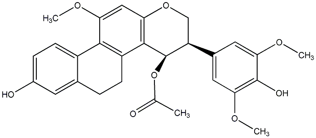 COc1cc([C@@H]2COc3cc(OC)c4c(c3[C@@H]2OC(C)=O)CCc2cc(O)ccc2-4)cc(OC)c1O |