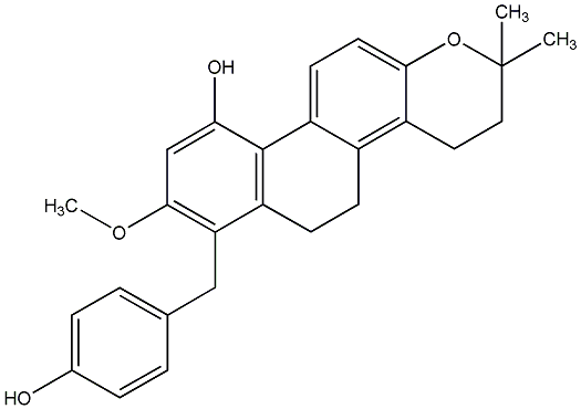 InChI=1S/C27H28O4/c1-27(2)13-12-19-18-8-9-21-22(14-16-4-6-17(28)7-5-16)25(30-3)15-23(29)26(21)20(18)10-11-24(19)31-27/h4-7,10-11,15,28-29H,8-9,12-14H2,1-3H3 |