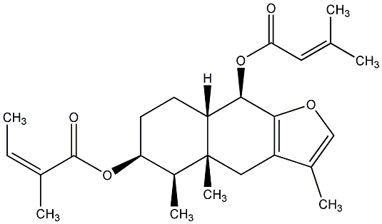 C/C=C(/C)C(=O)O[C@H]1CC[C@@H]2[C@@H](OC(=O)C=C(C)C)c3occ(C)c3C[C@]2(C)[C@H]1C |