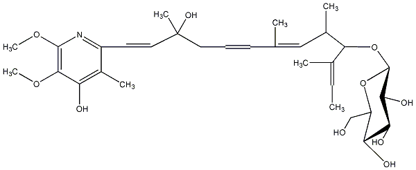 InChI=1S/C31H47NO10/c1-9-18(3)27(42-30-26(37)25(36)24(35)22(16-33)41-30)19(4)15-17(2)11-10-13-31(6,38)14-12-21-20(5)23(34)28(39-7)29(32-21)40-8/h9-12,14-15,19,22,24-27,30,33,35-38H,13,16H2,1-8H3,(H,32,34)/b11-10+,14-12-,17-15+,18-9-/t19-,22+,24+,25-,26+,27+,30-,31-/m0/s1 |