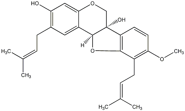 InChI=1S/C26H30O5/c1-15(2)6-8-17-12-19-23(13-21(17)27)30-14-26(28)20-10-11-22(29-5)18(9-7-16(3)4)24(20)31-25(19)26/h6-7,10-13,25,27-28H,8-9,14H2,1-5H3/t25-,26+/m0/s1 |