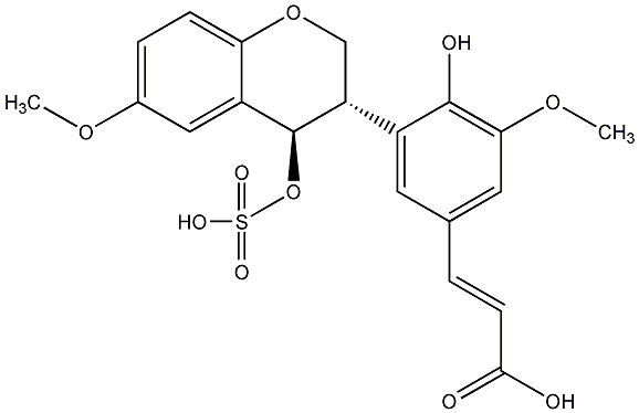 InChI=1S/C20H20O10S/c1-27-12-4-5-16-14(9-12)20(30-31(24,25)26)15(10-29-16)13-7-11(3-6-18(21)22)8-17(28-2)19(13)23/h3-9,15,20,23H,10H2,1-2H3,(H,21,22)(H,24,25,26)/b6-3+/t15-,20+/m1/s1 |
