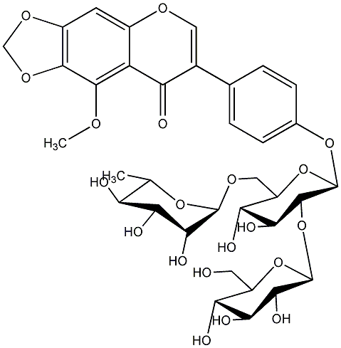 Germanaism F 4'-Hydroxy-5-methoxy-6,7-methylenedioxyisoflavone 4'-O-(2''-glucosyl-6''-rhamnosylglucoside) |