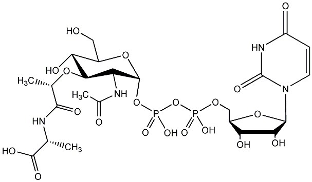 CC(=O)NC1[C@@H](OP(=O)(O)OP(=O)(O)OC[C@H]2O[C@@H](n3ccc(=O)[nH]c3=O)[C@@H](O)C2O)OC(CO)[C@@H](O)[C@@H]1O[C@@H](C)C(=O)N[C@H](C)C(=O)O |