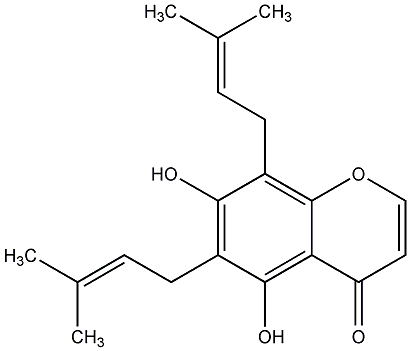 CC(C)=CCc1c(O)c(CC=C(C)C)c2occc(=O)c2c1O |