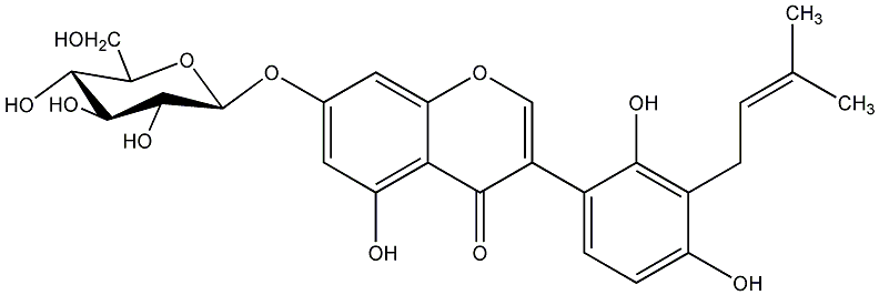 CC(C)=CCc1c(O)ccc(-c2coc3cc(O[C@@H]4OC(CO)[C@@H](O)[C@H](O)C4O)cc(O)c3c2=O)c1O |