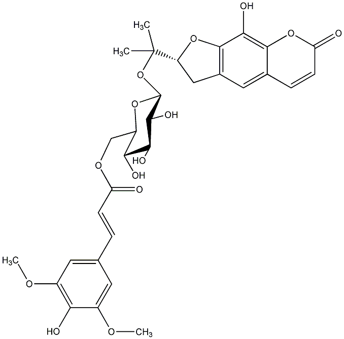 COc1cc(/C=C/C(=O)OCC2O[C@@H](OC(C)(C)[C@H]3Cc4cc5ccc(=O)oc5c(O)c4O3)C(O)[C@@H](O)[C@@H]2O)cc(OC)c1O |