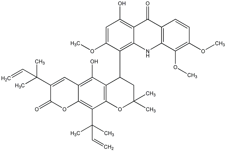 C=CC(C)(C)c1cc2c(O)c3c(c(C(C)(C)C=C)c2oc1=O)OC(C)(C)CC3c1c(OC)cc(O)c2c(=O)c3ccc(OC)c(OC)c3[nH]c12 |