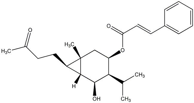 InChI=1S/C24H32O4/c1-15(2)21-19(28-20(26)13-11-17-8-6-5-7-9-17)14-24(4)18(12-10-16(3)25)22(24)23(21)27/h5-9,11,13,15,18-19,21-23,27H,10,12,14H2,1-4H3/b13-11+/t18-,19-,21-,22+,23+,24+/m1/s1 |