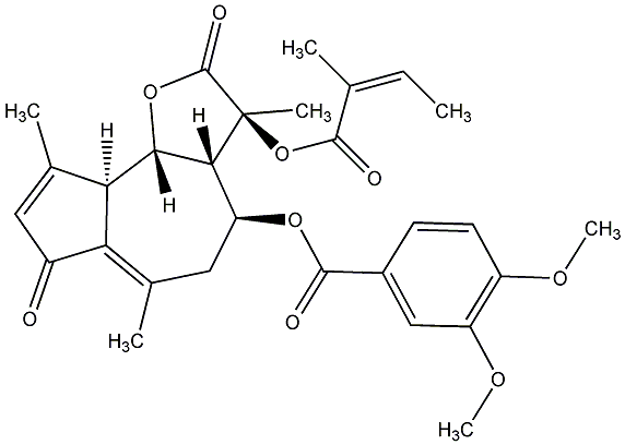 C/C=C(/C)C(=O)O[C@]1(C)C(=O)O[C@H]2[C@@H]3C(C)=CC(=O)C3=C(C)C[C@H](OC(=O)c3ccc(OC)c(OC)c3)[C@H]21 |