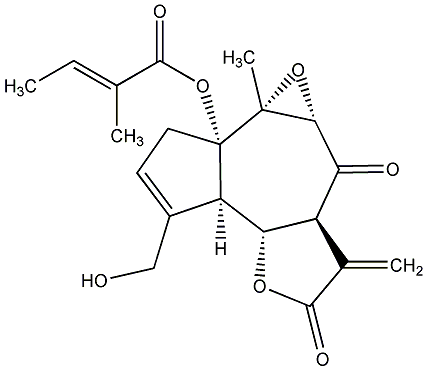 InChI=1S/C20H22O7/c1-5-9(2)17(23)27-20-7-6-11(8-21)13(20)15-12(10(3)18(24)25-15)14(22)16-19(20,4)26-16/h5-6,12-13,15-16,21H,3,7-8H2,1-2,4H3/t12-,13-,15-,16-,19-,20+/m1/s1 |