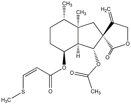 InChI=1S/C21H28O6S/c1-12-6-7-15(27-16(23)8-9-28-5)17-18(26-14(3)22)21(11-20(12,17)4)13(2)10-25-19(21)24/h8-9,12,15,17-18H,2,6-7,10-11H2,1,3-5H3/b9-8-/t12-,15-,17+,18+,20+,21+/m0/s1 |
