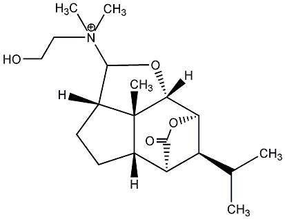 CC(C)[C@@H]1[C@H]2OC(=O)[C@@H]1[C@@H]1CC[C@@H]3C([N+](C)(C)CCO)O[C@H]2[C@@]31C |