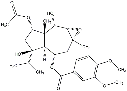 InChI=1S/C26H36O9/c1-13(2)26(30)12-19(33-14(3)27)25(5)20(26)18(11-24(4)22(35-24)21(25)28)34-23(29)15-8-9-16(31-6)17(10-15)32-7/h8-10,13,18-22,28,30H,11-12H2,1-7H3/t18-,19-,20+,21+,22-,24+,25-,26+/m0/s1 |