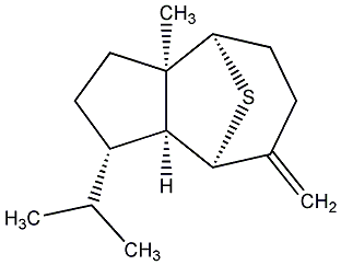 InChI=1S/C15H24S/c1-9(2)11-7-8-15(4)12-6-5-10(3)14(16-12)13(11)15/h9,11-14H,3,5-8H2,1-2,4H3/t11-,12+,13+,14-,15-/m0/s1 |
