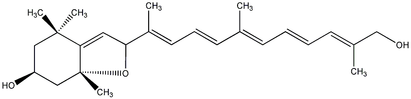 InChI=1S/C25H36O3/c1-18(10-7-8-11-19(2)17-26)12-9-13-20(3)22-14-23-24(4,5)15-21(27)16-25(23,6)28-22/h7-14,21-22,26-27H,15-17H2,1-6H3/b8-7+,12-9+,18-10+,19-11+,20-13+/t21-,22+,25+/m0/s1 |