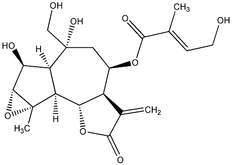 InChI=1S/C20H26O9/c1-8(4-5-21)17(24)27-10-6-20(26,7-22)12-13(19(3)16(29-19)14(12)23)15-11(10)9(2)18(25)28-15/h4,10-16,21-23,26H,2,5-7H2,1,3H3/b8-4+/t10-,11-,12+,13+,14+,15-,16-,19+,20+/m1/s1 |
