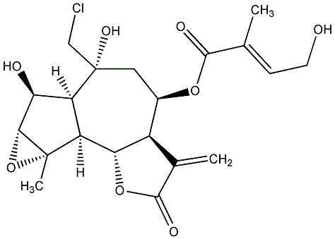 InChI=1S/C20H25ClO8/c1-8(4-5-22)17(24)27-10-6-20(26,7-21)12-13(19(3)16(29-19)14(12)23)15-11(10)9(2)18(25)28-15/h4,10-16,22-23,26H,2,5-7H2,1,3H3/b8-4+/t10-,11-,12+,13+,14+,15-,16-,19+,20+/m1/s1 |