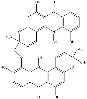 Cn1c2c(O)cccc2c(=O)c2c(O)cc3c(c21)C=CC(C)(COc1c(O)ccc2c(=O)c4c(O)cc5c(c4n(C)c12)C=CC(C)(C)O5)O3 |