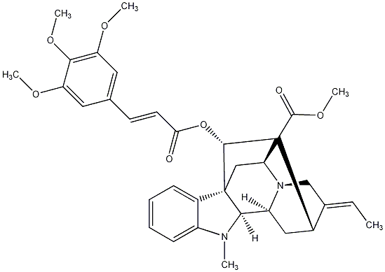 InChI=1S/C34H38N2O7/c1-7-20-18-36-24-16-22(20)34(32(38)42-6)27(36)17-33(21-10-8-9-11-23(21)35(2)30(24)33)31(34)43-28(37)13-12-19-14-25(39-3)29(41-5)26(15-19)40-4/h7-15,22,24,27,30-31H,16-18H2,1-6H3/b13-12+,20-7-/t22-,24-,27-,30+,31-,33+,34+/m0/s1 |