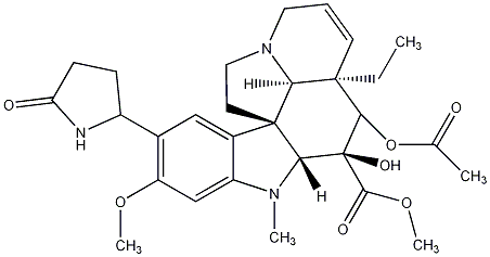 InChI=1S/C29H37N3O7/c1-6-27-10-7-12-32-13-11-28(23(27)32)18-14-17(19-8-9-22(34)30-19)21(37-4)15-20(18)31(3)24(28)29(36,26(35)38-5)25(27)39-16(2)33/h7,10,14-15,19,23-25,36H,6,8-9,11-13H2,1-5H3,(H,30,34)/t19-,23+,24-,25+,27-,28-,29+/m1/s1 |