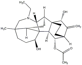 InChI=1S/C24H35NO4/c1-5-25-11-22(4)8-7-17(27)24-16(22)10-15(20(24)25)23-9-6-14(12(2)21(23)28)18(19(23)24)29-13(3)26/h14-21,27-28H,2,5-11H2,1,3-4H3/t14-,15+,16-,17+,18+,19-,20-,21-,22+,23+,24-/m1/s1 |