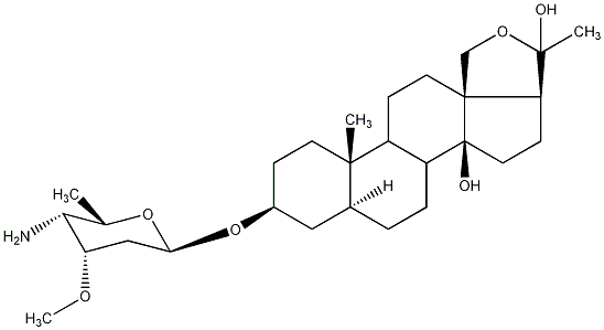 InChI=1S/C28H47NO6/c1-16-24(29)21(32-4)14-23(34-16)35-18-7-10-25(2)17(13-18)5-6-20-19(25)8-11-27-15-33-26(3,30)22(27)9-12-28(20,27)31/h16-24,30-31H,5-15,29H2,1-4H3/t16-,17-,18-,19+,20-,21+,22+,23+,24+,25+,26+,27-,28-/m0/s1 |