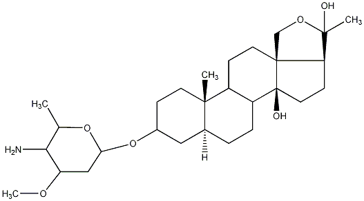 InChI=1S/C28H47NO6/c1-16-24(29)21(32-4)14-23(34-16)35-18-7-10-25(2)17(13-18)5-6-20-19(25)8-11-27-15-33-26(3,30)22(27)9-12-28(20,27)31/h16-24,30-31H,5-15,29H2,1-4H3/t16-,17+,18+,19+,20+,21+,22-,23+,24-,25-,26-,27+,28+/m1/s1 |