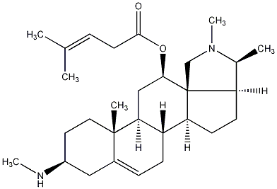 CN[C@H]1CC[C@@]2(C)C(=CC[C@H]3[C@@H]4CC[C@@H]5[C@H](C)N(C)C[C@@]54[C@H](OC(=O)CC=C(C)C)C[C@@H]32)C1 |