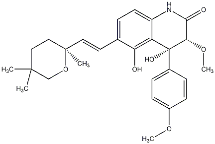 InChI=1S/C27H33NO6/c1-25(2)14-15-26(3,34-16-25)13-12-17-6-11-20-21(22(17)29)27(31,23(33-5)24(30)28-20)18-7-9-19(32-4)10-8-18/h6-13,23,29,31H,14-16H2,1-5H3,(H,28,30)/b13-12+/t23-,26+,27+/m0/s1 |