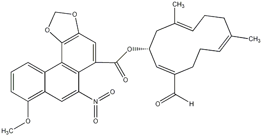 COc1cccc2c1cc([N+](=O)[O-])c1c(C(=O)O[C@H]3/C=C(/C=O)CC/C=C(/C)CC/C=C(C)C3)cc3c(c12)OCO3 |