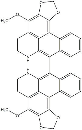 InChI=1S/C36H28N2O6/c1-39-31-21-11-13-37-29-23(17-7-3-5-9-19(17)27(25(21)29)33-35(31)43-15-41-33)24-18-8-4-6-10-20(18)28-26-22(12-14-38-30(24)26)32(40-2)36-34(28)42-16-44-36/h3-10,37-38H,11-16H2,1-2H3 |