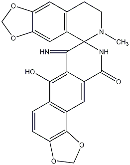 InChI=1S/C24H19N3O6/c1-27-5-4-11-6-17-18(32-9-31-17)8-15(11)24(27)22(25)19-14(23(29)26-24)7-13-12(20(19)28)2-3-16-21(13)33-10-30-16/h2-3,6-8,25,28H,4-5,9-10H2,1H3,(H,26,29)/b25-22-/t24-/m0/s1 |