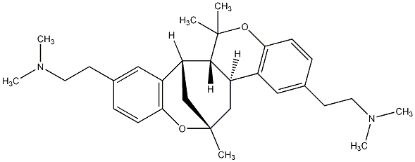 CN(C)CCc1ccc2c(c1)[C@H]1C[C@@]3(C)C[C@H](c4cc(CCN(C)C)ccc4O3)[C@@H]1C(C)(C)O2 |