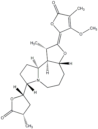 InChI=1S/C23H31NO6/c1-11-10-17(29-22(11)25)14-7-8-15-18-12(2)20(28-16(18)6-5-9-24(14)15)21-19(27-4)13(3)23(26)30-21/h11-12,14-18H,5-10H2,1-4H3/b21-20+/t11-,12-,14-,15-,16+,17-,18+/m0/s1 |