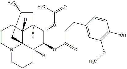 InChI=1S/C28H39NO6/c1-17-14-20-21-6-4-12-29-13-5-7-22(28(21,29)16-17)27(26(20)34-18(2)30)35-25(32)11-9-19-8-10-23(31)24(15-19)33-3/h8,10,15,17,20-22,26-27,31H,4-7,9,11-14,16H2,1-3H3/t17-,20-,21-,22-,26+,27+,28-/m1/s1 |