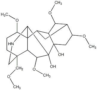 InChI=1S/C24H39NO7/c1-28-11-21-7-6-15(30-3)23-13-8-12-14(29-2)9-22(26,16(13)17(12)31-4)24(27,20(23)25-10-21)19(32-5)18(21)23/h12-20,25-27H,6-11H2,1-5H3/t12-,13-,14+,15-,16-,17+,18+,19+,20-,21-,22-,23-,24+/m0/s1 |