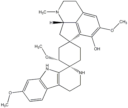 InChI=1S/C30H37N3O4/c1-33-12-8-17-13-23(36-3)27(34)26-25(17)22(33)15-29(26)9-10-30(24(16-29)37-4)28-20(7-11-31-30)19-6-5-18(35-2)14-21(19)32-28/h5-6,13-14,22,24,31-32,34H,7-12,15-16H2,1-4H3/t22-,24+,29-,30-/m0/s1 |