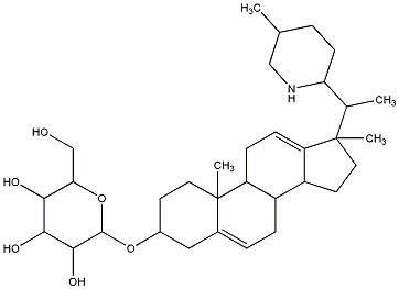 InChI=1S/C33H53NO6/c1-18-5-10-26(34-16-18)19(2)32(3)14-12-23-22-7-6-20-15-21(11-13-33(20,4)25(22)9-8-24(23)32)39-31-30(38)29(37)28(36)27(17-35)40-31/h6,8,18-19,21-23,25-31,34-38H,5,7,9-17H2,1-4H3/t18-,19+,21-,22-,23-,25-,26-,27-,28+,29+,30-,31-,32-,33-/m0/s1 |