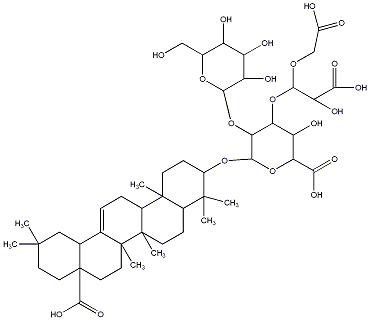 CC1(C)CCC2(C(=O)O)CCC3(C)C(=CCC4C5(C)CCC(OC6OC(C(=O)O)C(O)C(OC(OCC(=O)O)C(O)C(=O)O)C6OC6OC(CO)C(O)C(O)C6O)C(C)(C)C5CCC43C)C2C1 |