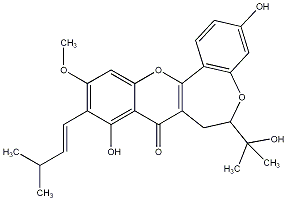 COc1cc2oc3c(c(=O)c2c(O)c1/C=C/C(C)C)CC(C(C)(C)O)Oc1cc(O)ccc1-3 |