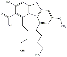 CCCCCc1cc(OC)cc2oc3cc(O)c(C(=O)O)c(CCCCC)c3c12 |
